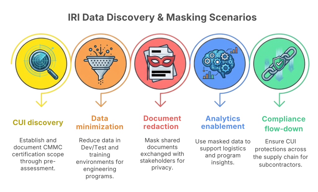 CMMC compliance is ultimately about reducing risk to sensitive defense information. IRI’s data discovery and masking software provides the technical means to operationalize CMMC requirements with precision, scalability, and auditability. For defense contractors and consultants, a data-centric approach not only accelerates certification but also builds a stronger, more resilient security foundation for the long term.