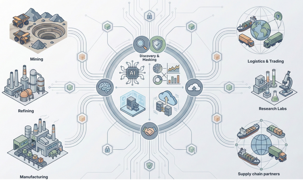 - Magnet, Battery & Advanced Materials Manufacturing: Mask sensitive formulations, tolerances, and performance data to support testing, analytics, and supplier collaboration without IP leakage.