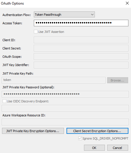 Select the OAuth Options… button to paste the access token. Click OK when done.