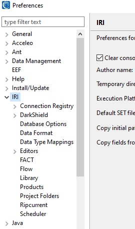 To do that, in Workbench, go to IRI Preferences and then select the twisty next to IRI to see more options.