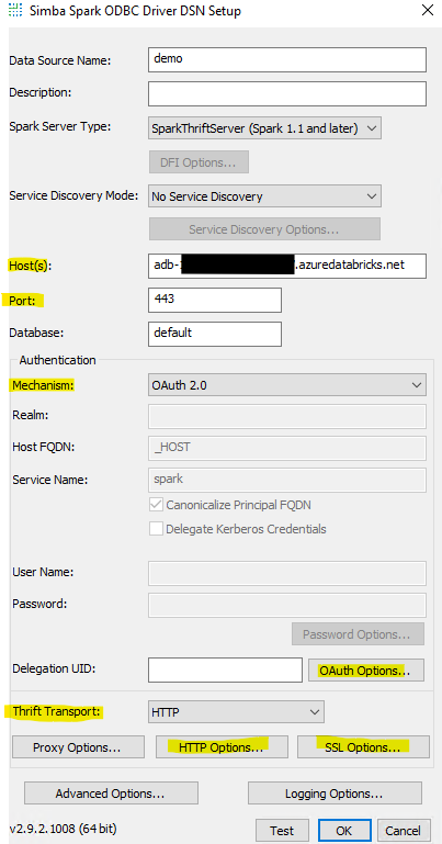 Once all that is done, select the Test button at the bottom of the Simba Spark ODBC Driver Setup page to ensure that the ODBC connection is set up correctly.