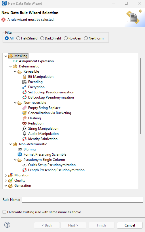 Using the IRI Workbench GUI for FieldShield, you can also define and apply deterministic data masking rules across one or more data sources at a time. This protects columns in multiple tables (or files) with similar content in a consistent way and thus preserves referential integrity.